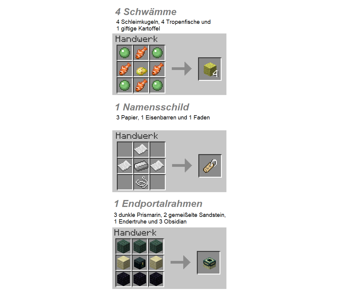 Und noch mehr Crafting-Rezepte: